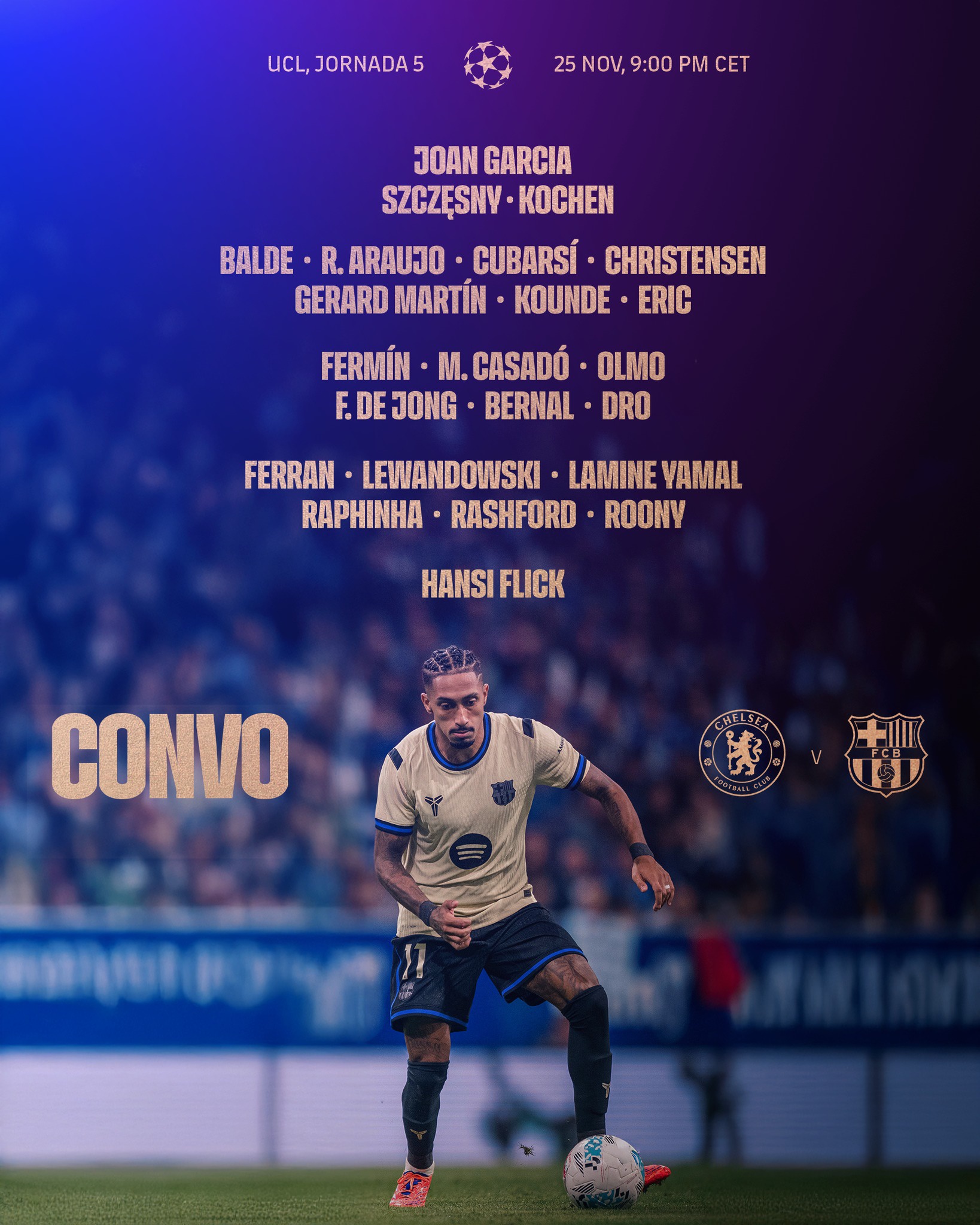 Hansi Flick a mai sajtótájékoztatón: "Raphinha bevethető lesz az Athletic ellen. Talán tíz vagy tizenöt percet kaphat, meglátjuk pontosan mennyi lesz, mindenesetre nagy lépés, hogy visszatért közénk. Marcus lázas, így tegnap és ma sem tudott edzeni. Kétlem, hogy holnap számolhatunk vele. Lamine állapota? Nagyon keményen dolgozott az elmúlt két hétben, ennyit tudok mondani. Folyamatosan változik az állapota, jól kezeli a helyzetet és folyamatosan együttműködik a stábbal. Pedri? Nem tudom mikor térhet vissza, lépésről lépésre haladunk az esetében is, nem siettethetjük a visszatérését, de jó munkát végez az edzéseken, jól halad a felépülése. Reméljük, hogy hamarosan visszatérhet, azt viszont nem tudom megmondani, hogy ez már a Chelsea ellen megtörténhet-e. Meglátjuk. Joan García lesz a kapusunk holnap."
